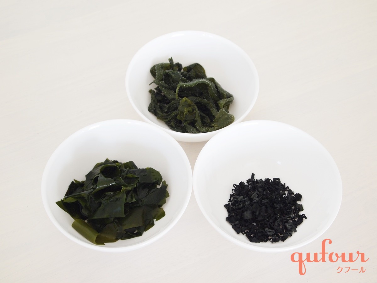 乾燥ワカメには、収穫したワカメをそのまま干した「素干しワカメ」、灰をまぶして干した「灰干しワカメ」、小さく切った「カットワカメ」などの種類があります。灰をまぶしてある灰干しワカメは、先にもみ洗いをして灰を落としてから水に浸けて戻しますが、素干しワカメとカットワカメは洗う必要がありません。どのワカメも水に5~6分浸けて戻し、水分を切ります。戻すと約10倍に増えるため、戻す量に注意しましょう。カットわかめは、直接汁へ入れて1~2分茹でて戻してもOKです。