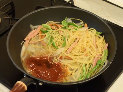 フライパン1つで作るパスタは洗い物が少なく、1人分の食事を作りたいときに手軽です。今回は、自宅によくある材料で作る「ワンパンナポリタン」を紹介します。トマトケチャップに麺つゆを加え、旨味をアップします。