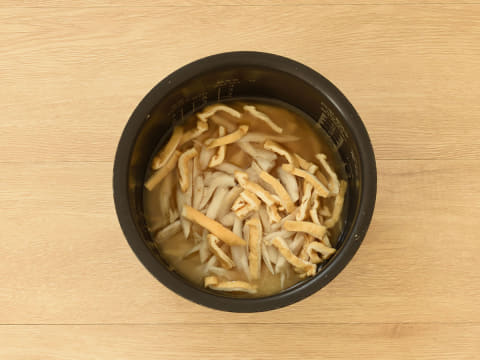 調味料はめんつゆだけ「ゴボウと油揚げの炊き込みごはん」