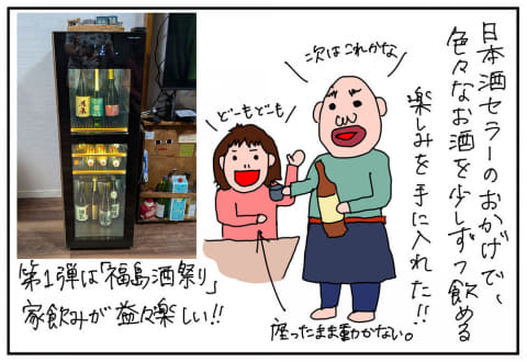 おかげで、家飲みが1つランクアップした。色々な日本酒を色々飲み比べできてかなり楽しい! 「これだけ残しててもねぇ」という無意味な飲みすぎはなくなったけど、まだ慣れなくてというか楽しすぎて落ち着くまではちょっと飲みすぎ傾向(笑)。夫も「いい酒屋さん見つけた!」と日本酒を少しずつ買ってきてくれたり一緒に楽しんでくれている。