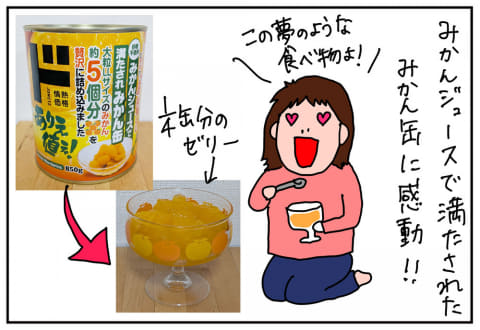 買う時に「こんな贅沢なことしちゃって良いんだろうか」とちょっと手が震えた(笑)。出来上がったゼリーは「これは貴族の食べ物だ!」と、感動で子供の私が心の中で歓喜の舞をしていた。ありがとうみかん。ありがとうドン・キホーテ!