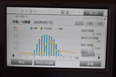 そうして2回目のパワコン交換となったのだ。担当者によれば「同じシステムを導入しているところは国内に多数あるけれど、同様の不具合は出ていないため、開発側も一緒に原因究明をしているのでもう少し待ってほしい」とのこと。動作履歴データから問題点が見つかればと願いつつ、心の中では、これは不具合というよりも、設計側の問題なのでは?」とも。