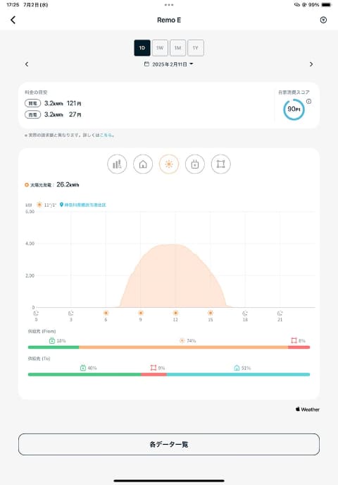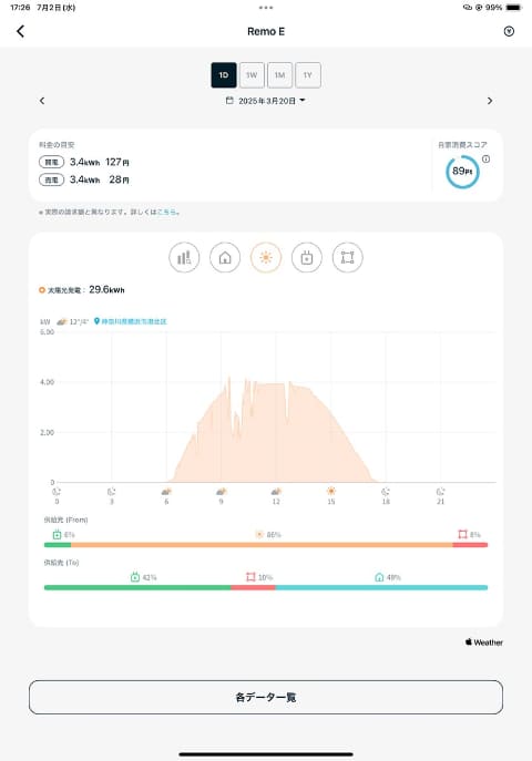 それに変更するには、パワコンの買い替えが必要となるけれど、そもそも4kWの擦り切れによるデメリットは発電量の2%以下であり、パワコンを買い替えても元が取れないとのことで、とりあえず現状のままで行くことになった。