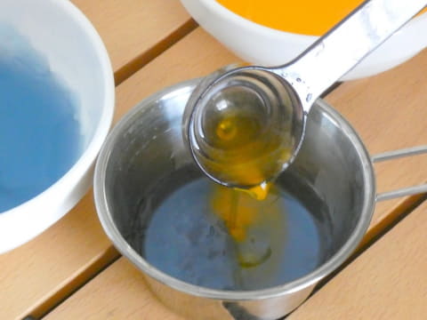 ちなみに筆者は青色と黄色を同量混ぜて、緑色のゼリー液を作りました。