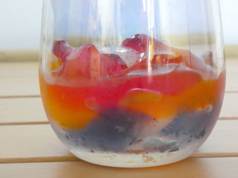 さらにユニークだなと思ったのは、異なる2色のゼリー液を混ぜて、違うカラーのゼリーを作れること。レンジで加熱した直後の温かいゼリー液同士を混ぜ合わせることで、色を変化させられます。