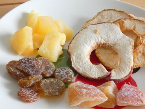 そのままおやつやおつまみなどとして楽しむのはもちろんですが、プレーンヨーグルトやシリアルに混ぜるのもおすすめです。半生製法では蜜煮あるいは蜜漬けされているので甘みが強く、砂糖を加えなくてもおいしく食べられます。シリアルに混ぜるときは、細かく刻んで入れると食べやすいです。また、複数種類を混ぜて、オリジナルのフルーツグラノーラ風シリアルを楽しめるのも良いと思いました。