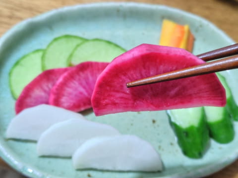 また、野菜の変色がほとんどなく、そのままの色を生かせるのもぬか漬けならでは。カラフルな野菜を使うと彩りも良く、食卓が華やかに見えるのも良いと思いました。