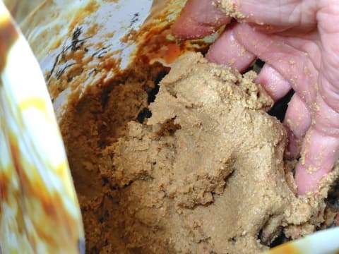 ぬか床の基本材料は、米ぬか、塩、水、唐辛子などです。本品に使われているのは、和歌山県産キヌヒカリの米ぬか、同じく和歌山県産の唐辛子、兵庫県産の赤穂塩、北海道産昆布、高知県産しょうがのほか、和歌山県産のみかんの皮や柿の皮、佐賀県産きなこなど。すべて国産の自然素材を使った無添加のぬか床というのも魅力だと思いました。
