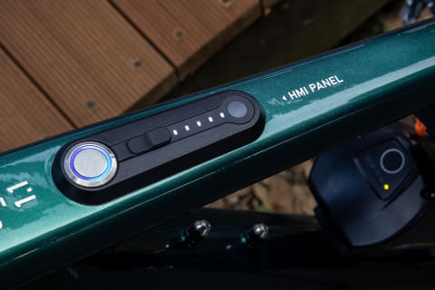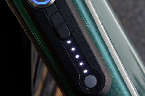 試走中はちらちらとスマホアプリに表示されるバッテリー残量を見ていたが、走行中であっても車体側バッテリーの残量が約90%になるような制御がされていたので、フレームのトップチューブに付いているLEDのバッテリー残量インジケーターはいくら走ってもまったく減らない状態だ。