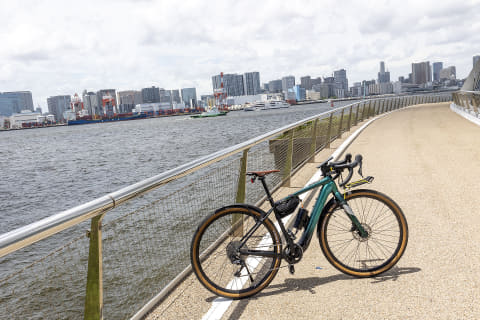 コースは、東京のお台場や有明、そして若洲といった海沿いのエリアを走ることにした。ここは自転車レーンや歩道の自転車走行帯がしっかり整備されているので走りやすいし、海沿いまで出られるところが多いので、ひたすら走り続けるようなライドじゃなく、適当に休憩をしながらののんびりライドが楽しめるので、東京近郊に住んでいてe-bikeに乗っている人であれば、ぜひ走ってみてもらいたいところだ。