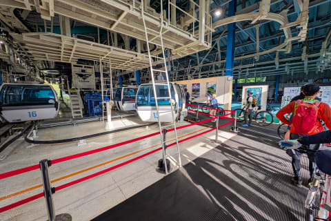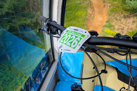 というわけで2日目、朝7時スタートのMTB Short Trailに参加するため、6時半の集合時間に合わせてホテルを出発しました。会場到着は6時20分頃でしたが、これだとかなりギリギリです。というのも、受付でゼッケンを受け取る必要があり、それを自転車のハンドルなどに固定したうえで、ゴンドラに20分ほど揺られてスタート地点の山頂へ向かう必要があるからです。