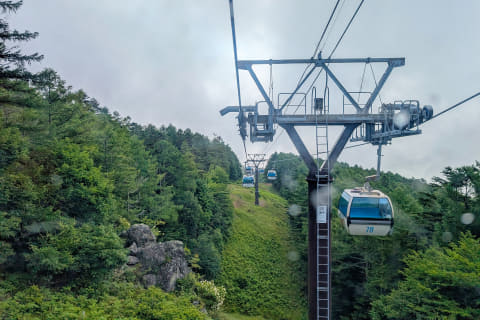 時間がなかった筆者は慌ててゴンドラに乗り込み、その中でゼッケンを装着し、なんとか7時ちょうどに山頂にたどり着けました。なので、焦ることのないように、余裕をもって6時頃には到着できるようにしたいところです。あるいは現地でテント泊・車中泊するのがベストなのかも?