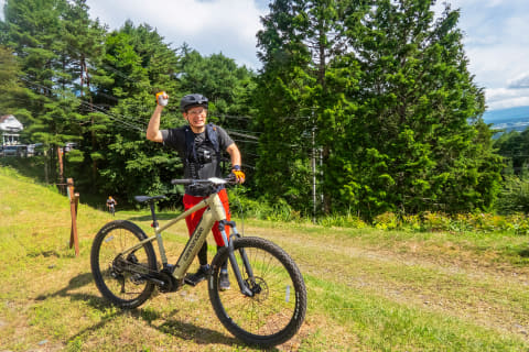 最後のゴール地点手前、富士見パノラマリゾートの駐車場に戻る急坂ではなぜか参加者全員のヒルクライムレースのようになりましたが、筆者はe-MTBのチート級パワーを味方にトップでゴールイン、おかげさまで全力で楽しませてもらいました。MTB Short Trailがどんなコースだったのかは、全行程を1分にギュッとまとめた下記のダイジェスト動画で少しでも伝われば、と思います。