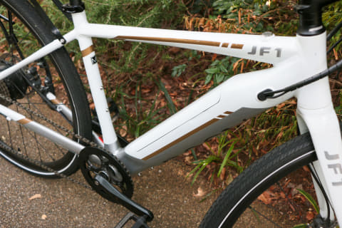 続いて試乗したモデルは、BESVのクロスバイクタイプである「JF1」。バッテリーをフレームに内蔵したインチューブタイプでスマートなルックスであることと、重量が16.1kgとかなり軽量に仕上がっているのが魅力です。制動力とコントロール性が高い油圧式ディスクブレーキを装備しています。