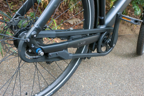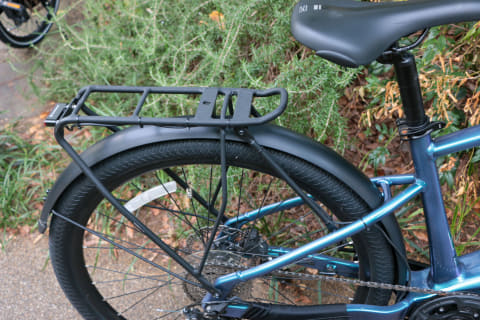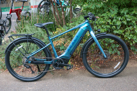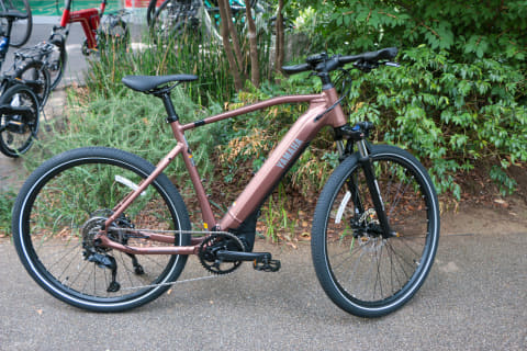 スタイルは今回試乗したモデルでは、一番クロスバイクらしいといえるもの。中林編集長も「知らない人はe-bikeと気づかないのでは? というくらいシンプルで好み」と評しています。インチューブタイプのバッテリーに加えて、ハブモータータイプのドライブユニットもシンプルな見た目を作り出している要因です。