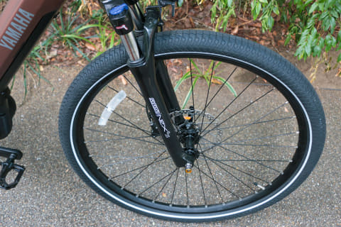 ヤマハのe-bike「YPJ」シリーズのクロスバイクタイプのモデルが「CROSSCORE(クロスコア) RC」。インチューブタイプのバッテリーを採用し、最新の自社製ドライブユニット「PWseries S2」を組み合わせています。前後27.5インチのタイヤとフロントサスペンションで段差の多い街中の道も快適に走れることを狙った設計です。