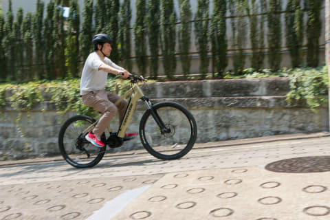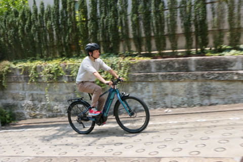 MTB(マウンテンバイク)タイプにも採用されているドライブユニットなので、アシストは強力です。少し踏み込むだけで車体をグイっと加速させてくれます。特に坂を上る際には恩恵が大きく、角度のある坂道も気にすることなく走ることができました。