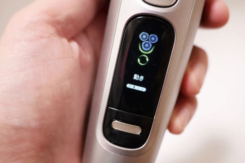 光のガイドは適切な圧力の目安を示してくれるため、過剰な力を入れる衝動を抑えるのに役立ちました。肌にざらつきや剃り残しを感じると、つい強く押し当ててしまい、知らず知らずのうちに肌を傷めてしまいがち。しかし、「圧力が強い」という表示を見ると、顔へのダメージは避けたいという意識が働き、それ以上力を入れることをためらうようになりました。