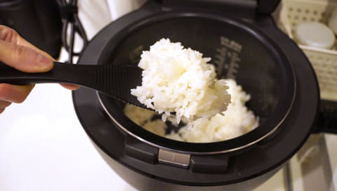 他の炊飯器の場合、炊き上がった直後はみずみずしいものの、柔らかすぎて食べるとべチャッとしていた。それに対し、本製品は見た目の潤いは少なかったものの、食感はちょうどよい。数回試してみたが、他に比べて毎回安定度が抜群で、「ビストロ匠技AI」が米の含水率を検知し、自動で炊き方を調整してくれる効果を実感した。