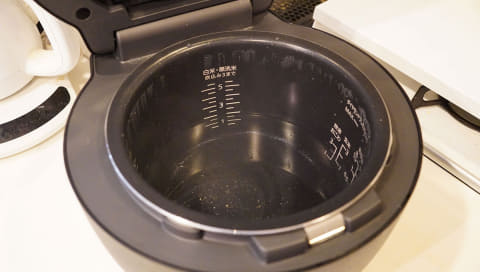 備蓄米はいろいろな米がブレンドされているというので、炊飯器にとっても炊き方が難しいのかもしれない。他の炊飯器は、炊き上がりの具合を見て、その後は水分量を調整してチューニングを行なっていたが、本製品は目盛りどおりの水分量でも最初から失敗なく炊けた。