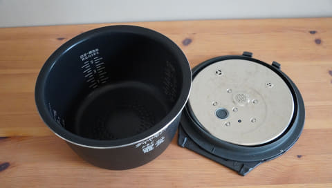 お手入れに関して、毎回お手入れが必要な部品は、内釜とふた加熱板の2点。ふた加熱板は食洗機にも対応している。その他前述のとおり、内部の脱臭や汚れを落とす「圧力お手入れ」機能も搭載している。いずれも昨今の上位モデルの炊飯器としては一般的な機能だ。