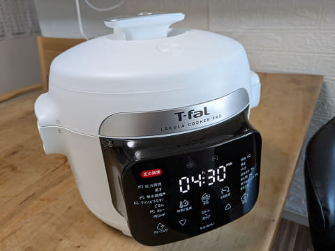 今回紹介するのはティファールの「ラクラ・クッカー プロ 自動調理鍋 ホワイト(圧力機能付き) CY3811J0」です。ティファールは電気圧力鍋を多数展開していますが、圧力機能に加えて調理機能を強化しているのが特徴。食材を自動でかき混ぜる「かきませパドル」を搭載しており、焼きそばやチャーハンといった炒め物もおいしく仕上げてくれます。