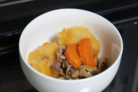 日常使いできる自動メニューももちろん搭載。材料と調味料を耐熱容器に入れてメニュー番号を設定すれば、あとは放置するだけで肉じゃがなどのおかずが一品作れます。
