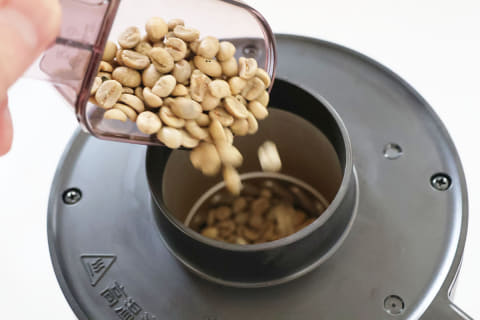 - 生豆60g(すりきり1杯分)を投入口に入れる