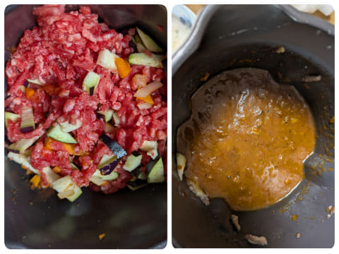 付属のレシピを見ていて驚いたのは、無水カレーまでできるということ。ひき肉とトマト缶、ナス、玉ねぎ、カレー粉というシンプルな材料で完成します。