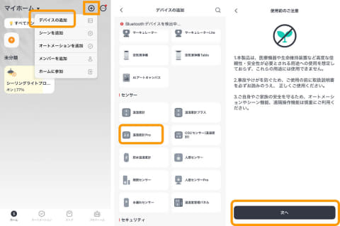 「スマートホーム」と聞くと、少しハードルが高そうな印象をもつかもしれませんが、温湿度計Proとハブミニの連携自体はかなりスムーズ。 「説明書なしで直感的に」とはいきませんが、公式の解説やアプリの案内画面に沿って進むだけで、迷わず設定できました。