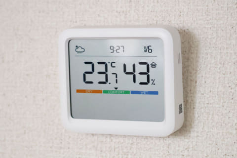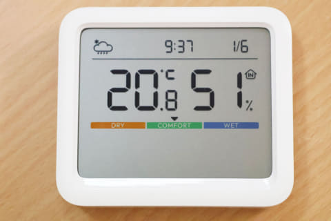 そんなときに頼りになるのが、空気の状態を“見える化”してくれる温湿度計です。なかでもSwitchBotの「温湿度計Pro」は、大画面で見やすく、機能も豊富なモデル。3,480円(税込)と、少し価格は高めですが、スマホ連携などのスマート機能も備えた便利な一台です。