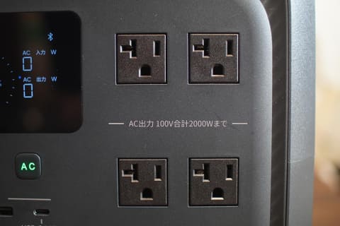 出力は、ACが4系統でトータル2,000W、瞬間最大4,000Wとなっている。また簡易UPS機能もあり、バッテリー出力とACスルーの切り替えは10ms以内で行なわれる。