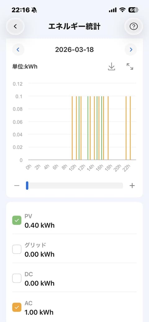 そのまま下にスクロールすると、日々の利用状況と節約額が表示される。ソーラーパネルなどから給電している場合、系統電力の1kWh単価を入力すると、それに応じて節約額が計算される。またCO2排出削減量も表示される。