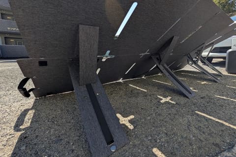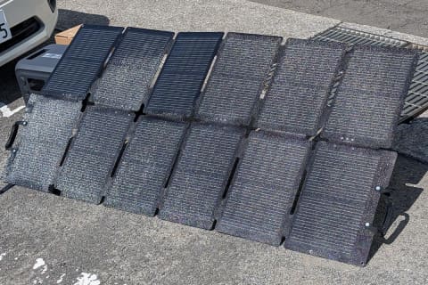 こうした細かく折りたためるパネルは、海岸などでは強風にあおられると設置状態が崩れることがある。風が強い場所では地面に平置きしたほうが安全だ。