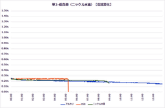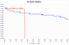 さて低負荷の特性は、ご覧の通り。電圧、電流ともにピタリと安定。寿命も乾電池にかなり近く、75%程度と長持ち。こりゃ凄い!