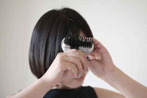 やはり、ちょっと引っ張るようにして梳かすのが良いみたい。先ほどと同じようにして内側からも髪をとかして、さらに気になるうねりやクセを伸ばしていきます。特に前髪は、内側からカールを意識してコームを通すと、自然な流れが作れていい感じです。
