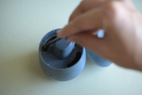6枚刃のあるカット面もしっかり掃除。ストロングネットのついている蓋を回して外したら、先ほどと同じく毛玉くずを取り除き、ブラシで掃除してキレイにしましょう。刃に指が当たらないように気をつけてくださいね。