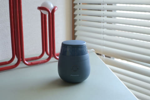 パナソニックNI-LC300はまず、このかわいらしいデザインが好印象。手のひらサイズで、丸みのあるぽてっとした形がキュートです。カラーはネイビーとベージュの2色展開で、私が選んだのは、ブルーグレーのような色味のネイビーです。