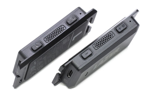 また、本体ユニットのスリットにあご紐を通すだけという装着方法ですが、実際に使用してみると「まず外れることはない」という安定感があります。それでいて着脱も容易なので、ヘルメットからヘルメットへの付け替えも簡単。総じて扱いやすい本体ユニットだと感じられました。