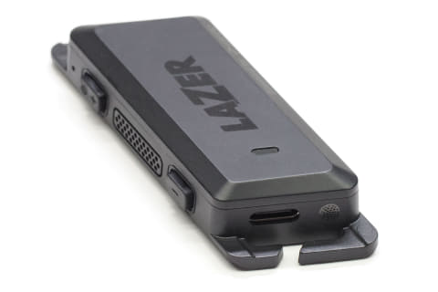LAZER「VeloVox」は細身の本体ユニット(左右・計2台)とスマートフォン用の専用アプリで使います。本体ユニットは親指大で、左右合計で38gと軽量。満充電から連続通話を約11時間行なえます。
