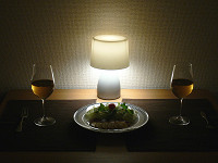 | 2人用の小さなテーブルにもしっくりと馴染む。キャンドルライトのような使い方で、大人の雰囲気を演出するのもなかなか素敵ではないだろうか |
