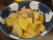 まずは和総菜から。大根を3cm厚くらいのイチョウ切りにし、鶏肉を一口大に切ります。(唐揚げ用にカットされている鶏肉にすれば、さらに時短!)そして、何の下ごしらえをすることも無く、これら切った材料と調味料を入れ、お料理モードの「煮物」を選んでスイッチを押すだけ。本当に簡単です。