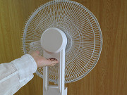 開いた状態では約420×400×1,110mm(同)になり、さらにポールの中ほどにある「高さ調節ボタン」を押すと、高さは1,250mmまで伸びる。羽根には、透明プラスチックの5枚羽根を採用している。本体にはDCモーターを搭載し、消費電力は最大20Wに抑えているという。