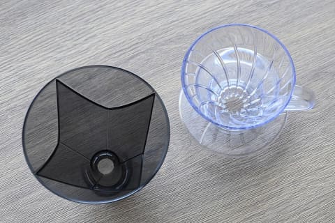ポイントは、ドリッパー内側に設けられた星形の溝。そこを伝ってゆっくりと抽出されるという仕組みになっています。ちなみに、これは「V60 1回抽出ドリッパー MUGEN」(880円/税込)と同じ構造と思われます。