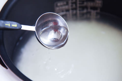 使い方は簡単です。炊飯前の米をいつも通り水加減し、1合につき大さじ1杯の水(15ml)と、本品をひとまわし(約3ml)加えて、よく混ぜ合わせます。3合炊くなら、水は大さじ3杯、本品は3まわし。あとは普通に炊飯するだけです。