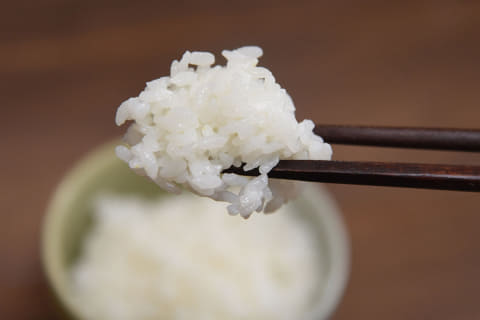 炊きあがった見た目では、特に大きな違いはわかりません。茶碗に盛り付けて食べてみると、普段よりも若干やわらかい炊きあがりに感じました。