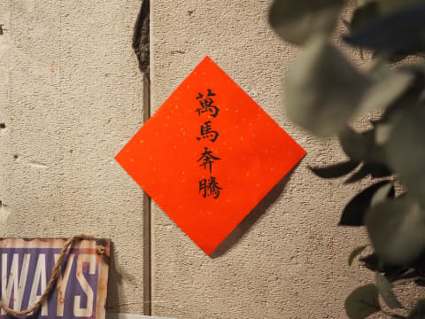 さて、春聯(しゅんれん)は、中国の春節(旧正月。今年は2月15日〜23日)に、幸福や長寿、商売繁盛などの願いを込めた縁起の良い言葉を赤い紙に書き、門や玄関に貼る伝統的な飾り物です。