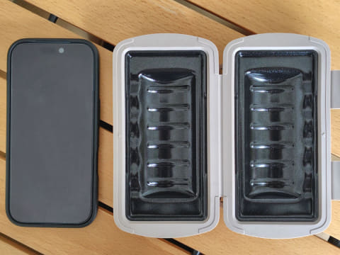 ニトリ「レンジで作れる ハーフホットサンドメーカー」は商品名の通り、ハーフサイズのホットサンドを作れる電子レンジ専用の調理器具です。本機は閉じた状態で、大人が片手でホールドできるサイズ感。内部に配置されているグリルプレートは、スマートフォンと同等の大きさです。価格は2,490円。