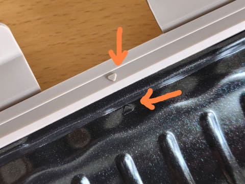 洗った後はよく乾燥させて水気を取り、グリルプレートを元のようにシリコンカバーにはめ込みます。プレートをシリコンカバーに取り付ける際は、それぞれの▲印同士を合わせます。