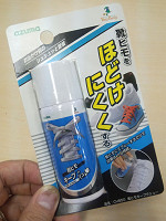 名前を読んで用法と効果はなんとなく想像できそうだが、念の為に説明しておくと、このスプレーを靴ヒモの結び目部分にシューッと吹き掛けることで、靴ヒモが解けにくくなるという。製造元は、静岡県は浜松市の掃除関連製品メーカー「アズマ工業」だ。